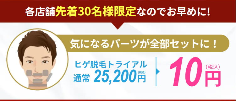 そこで青ヒゲを薄くしたいと思っているメンズに、ヒゲ脱毛が10円で体験できるメンズクリアのヒゲ脱毛10円トライアルをご紹介!