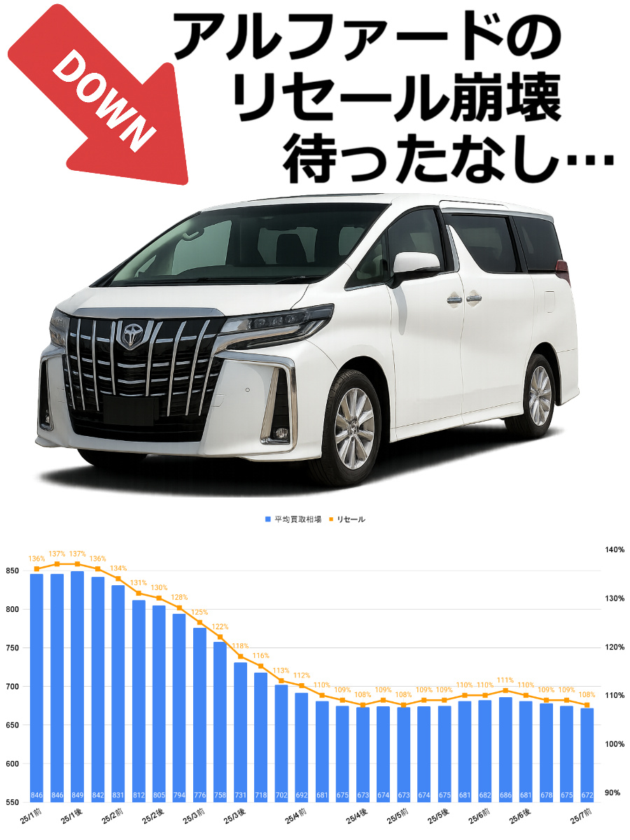 相場は下がってきましたが、アルファードは依然として一部ユーザー層からは根強い支持を受けており、一定の需要を維持しています。