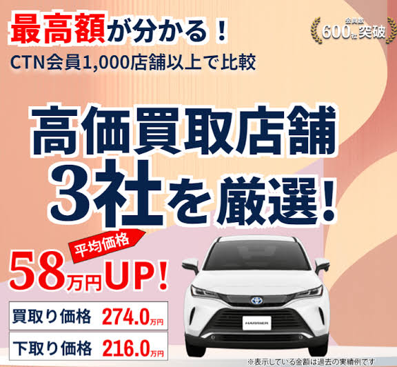 CTNは、提携する業者600社の中から最終的に高額提示の3社に絞り込んでくれるので必然と高価買取が実現します。