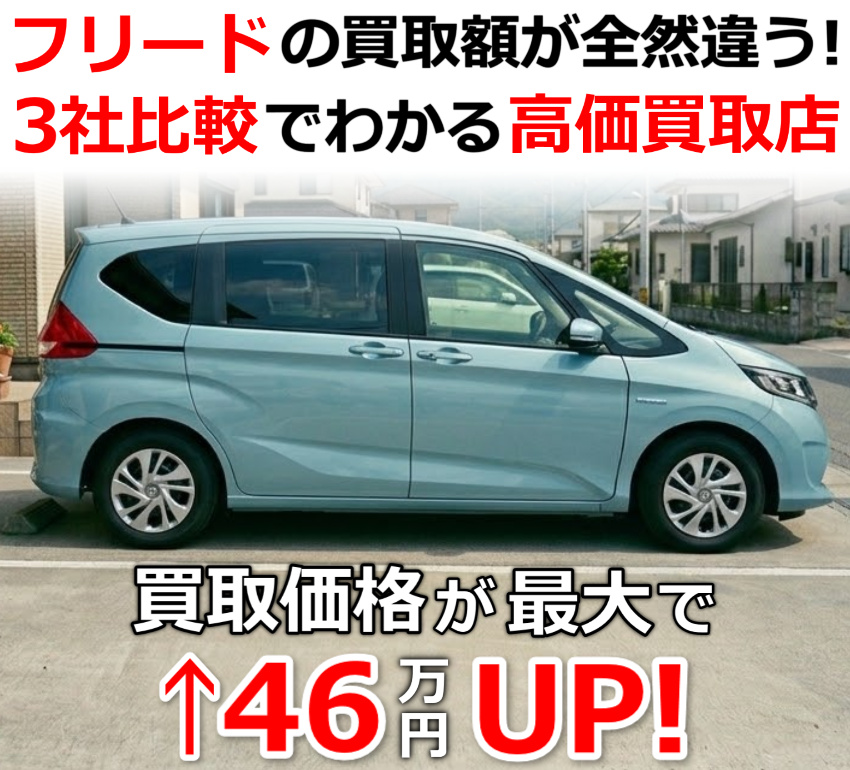 そこで当サイトでは、フリードの高価買取実績がある優良店3社を比較して、本当に高く売れる買取店をご紹介しています。