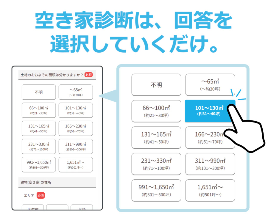 【空き家診断】とは、簡単な質問に答えるだけであなたの空き家に最適な解決プランをご提案します