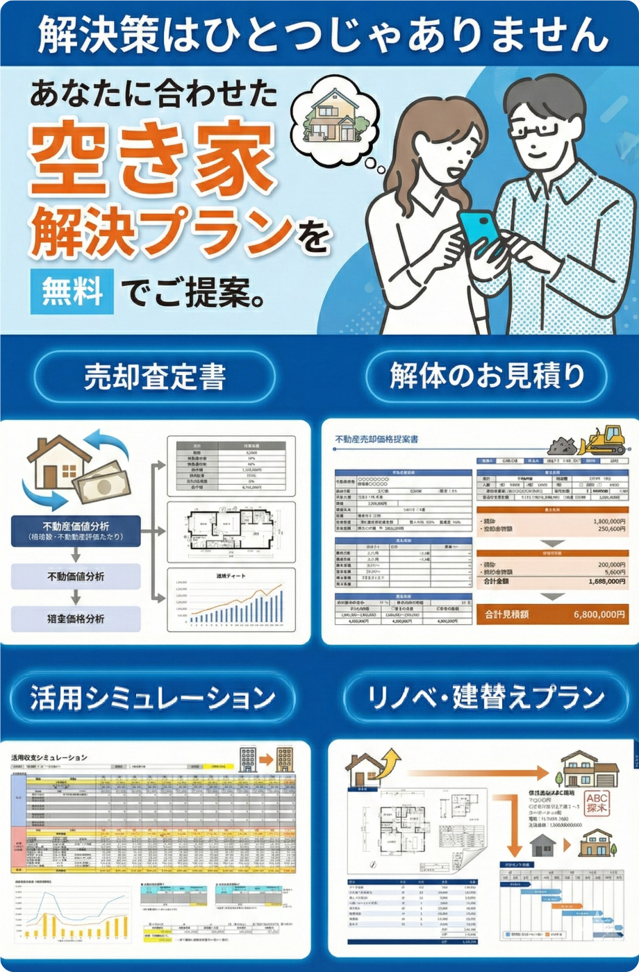 完全無料の空き家対策のプロが、あなたの安心できる暮らしをサポート致します。