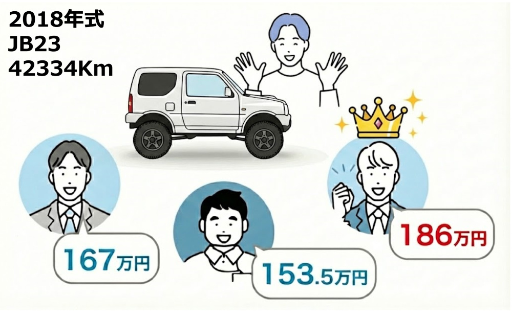 AIが過去の買取実践から優良店だけを自動で3社に厳選しますので、最高額を提示した買取店が分かります。