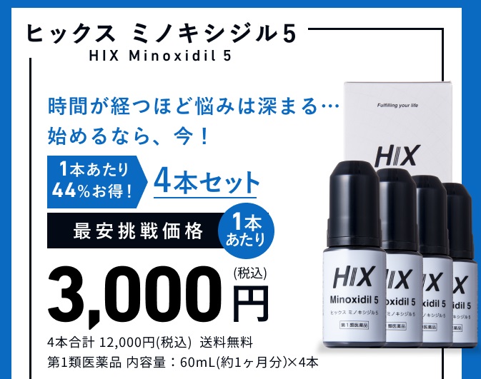 HIXミノキシジル5 1本あたり3,000円