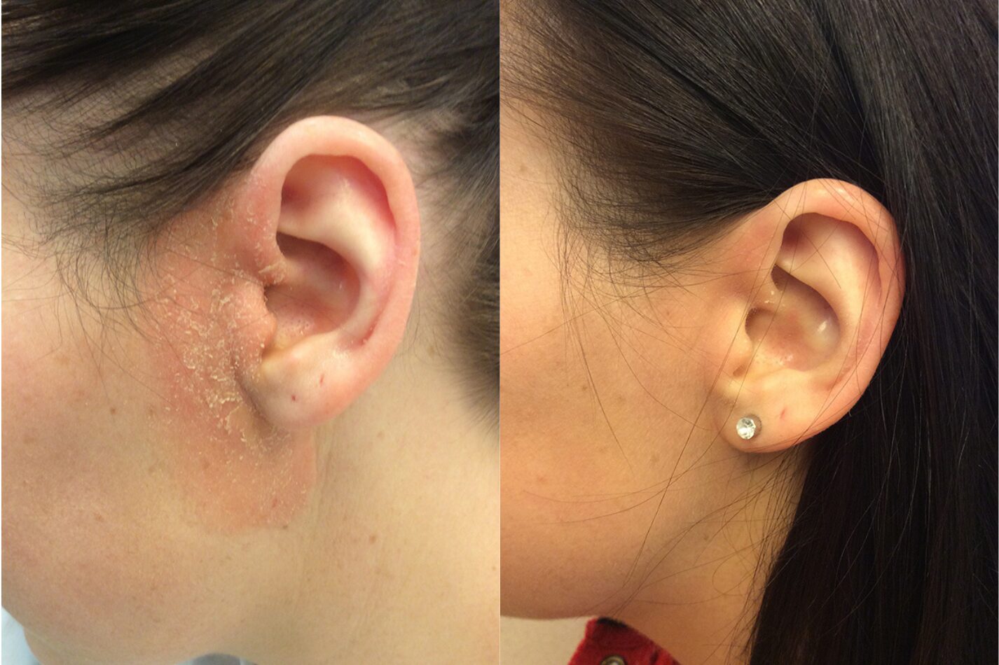 場所が耳なので髪の毛に隠れていますが、ぽろぽろと皮膚が剥がれ髪の毛にも絡まって😣肩にフケのようにたまり不衛生…💦