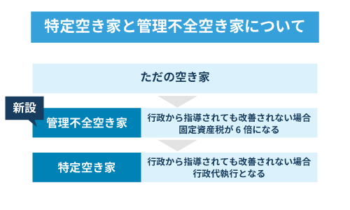 この法律は、放置された空き家の場合は、自治体から 管理不全空き家 と指定され、更にそのまま放置すると特定定空き家と認定されます。