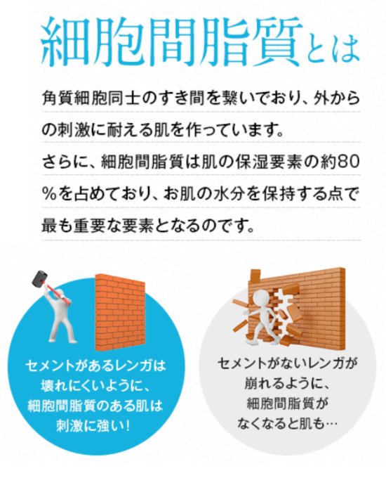 このライスパワーは細胞間脂質の水分保持機能改善が目的の有効成分。細胞間脂質の保湿を高め本来の肌バリアの機能改善を促します。