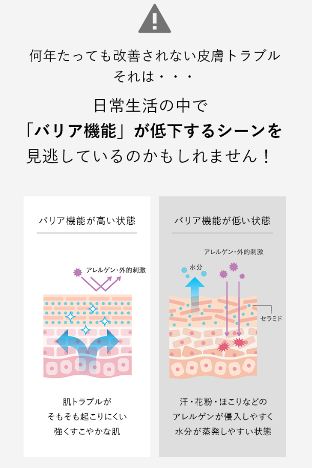 肌の疾患の原因の多くに、肌のバリア機能の低下が影響していると言われています。