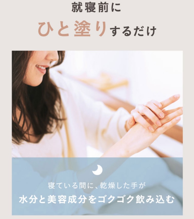 メーカーの説明でも、日常の使用ではなく、就寝前に塗るタイプのハンドクリームになります。
