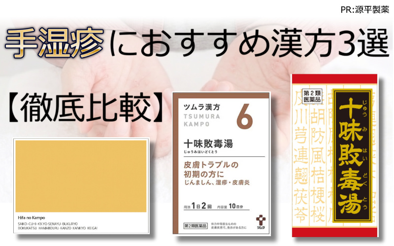 このサイトでは、湿疹に使われる「十味敗毒湯」を生薬とした漢方薬の中から、厳選した3種類のみをご紹介。