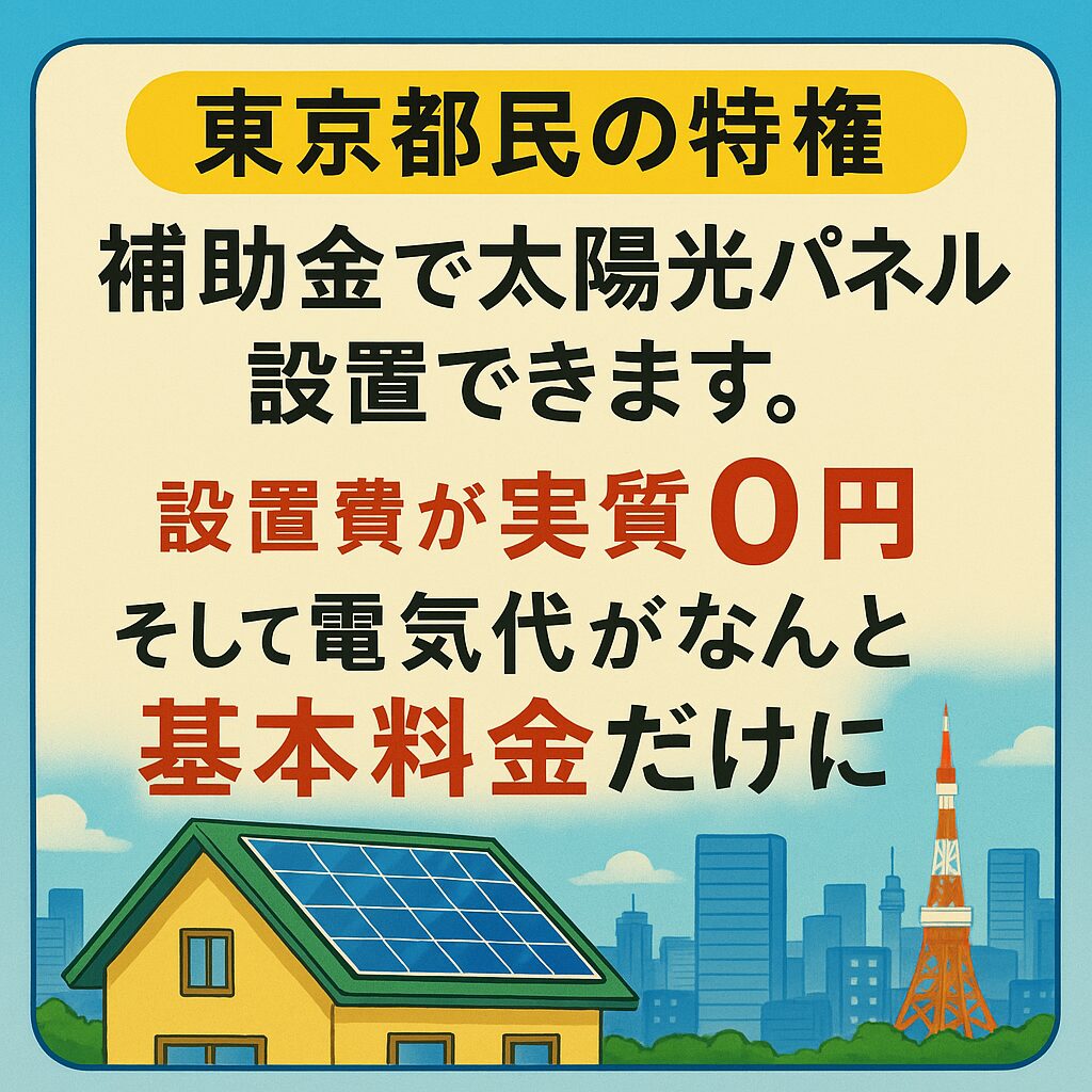 東京都は、新築だと太陽光パネルの設置が義務化だから後付のパネル対しても積極的に補助してくれる。